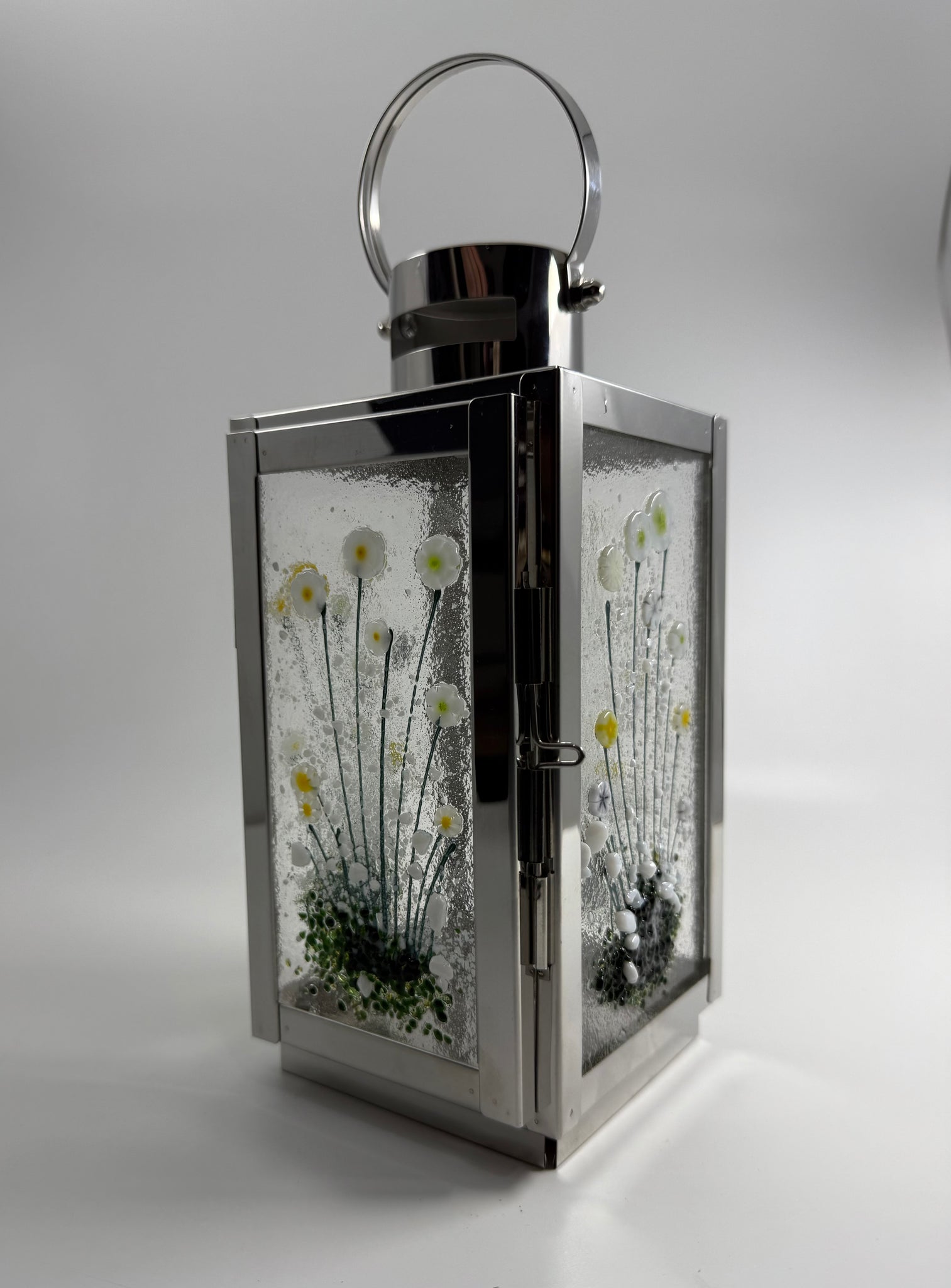 Each panel has been individually made using hand pulled murrini and enamels to create the flower stems and flower heads.